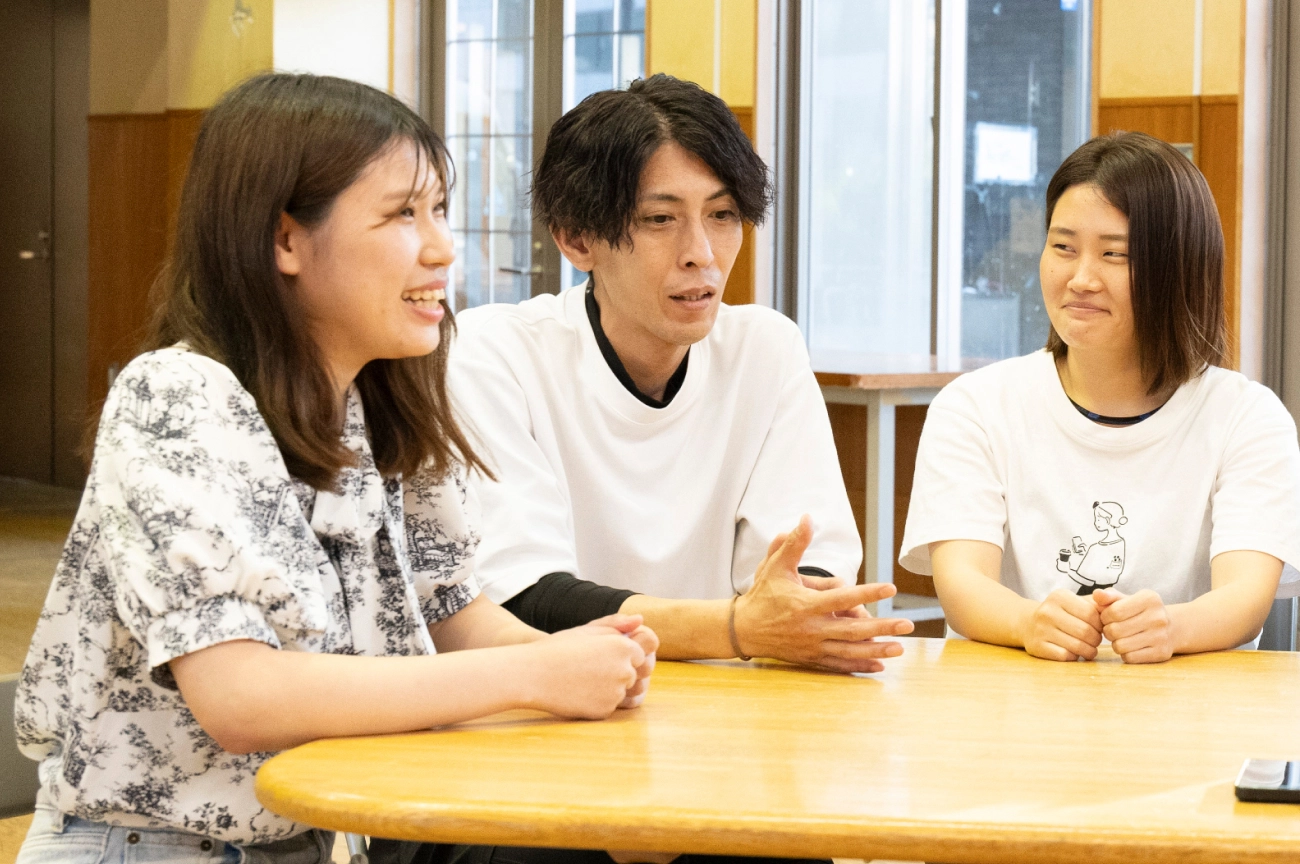 あと、仕事上だと相談に乗って欲しい時は自分から「話してもいいですか〜?」って積極的に聞きに行って、先輩後輩関係なくコミュニケーションは取りに行きますね。自分も積極的に動きますし、周りが受け入れてくれる方々だなと感じてます。